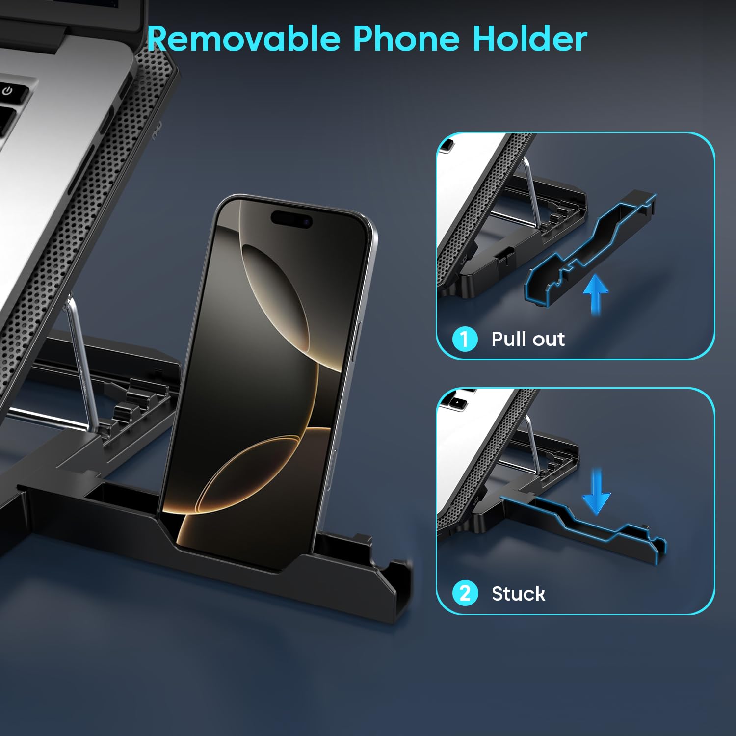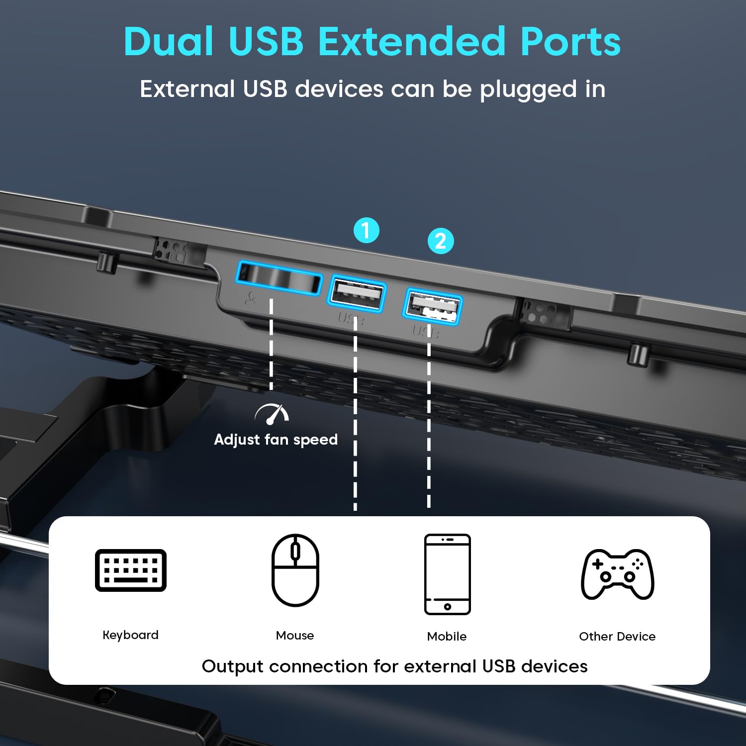 - [Powerful Dual-Fan Cooling Technology] Engineered with two high-performance 125mm fans, the Sounce NC5500D laptop cooler ensures optimal airflow to keep your device cool during prolonged usage. The powerful ventilation system helps reduce overheating, improving laptop performance and extending hardware lifespan in demanding conditions.