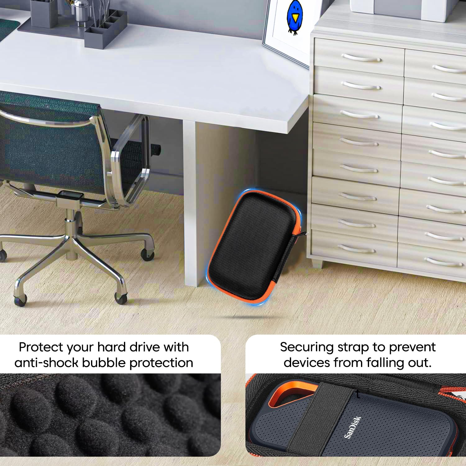 - [Shock Absorption & Anti-Static Lining] The interior features a soft, anti-static lining with shock-absorbing properties that shield your device from impacts, scratches, and minor drops. It effectively prevents damage caused by bumps or friction during transport, keeping your SSD safe in rugged environments. Designed to handle the rigors of daily commutes and fieldwork.